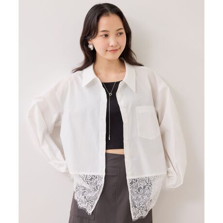 単品でもレイヤードでも最高に可愛いレースドッキングシャツ!バランス感丈感を計算してあるので、ジャケットもスウェットもどちらにもばっちり合います。