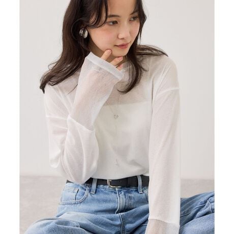 デニムなどに合わせて、短丈カップ付きキャミの上にサラリと一枚着も素敵なロンTです。