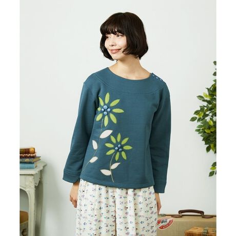 大胆なお花のアップリケが目を惹くカットソープルオーバー。テーマの「自由に飛び回る」からインスピレーションを受けています。ゆとりのあるボックスシルエットとドロップショルダーがリラクシーな着用感を叶えます。カジュアルな素材ながらも、ヨーク切り替えや左肩の配色ボタンが大人かわいい印象をプラス。折り返してもかわいいカーブスリットが入った袖口もこだわりのデザインポイントです。春らしい大きなフラワーモチーフと柔らかなカラーが褒められ間違いなしのカットソーは今季イチオシのオススメアイテムです。