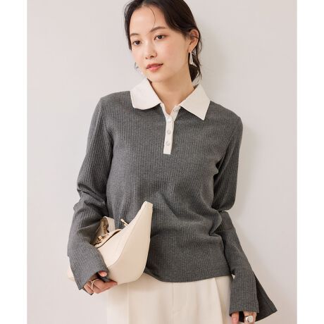 細身のシルエットですが伸縮性のあるカットソー素材でストレスな身体のラインをきれいに見せます。バイカラーの襟はやや丸みを持たせ、前立ては細く設定することで女性らしい印象に。袖口のスリットで手首も華奢にみせ、カジュアルな素材感だからこそさりげないポイントをレディなデザインにしています。ボトムイン・アウト両方が叶う丈感で着回し力◎