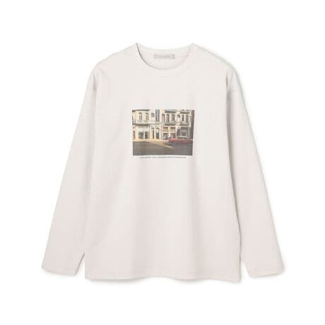 アウターやカーディガンなどのインナーに映えるフォトプリントカットソー