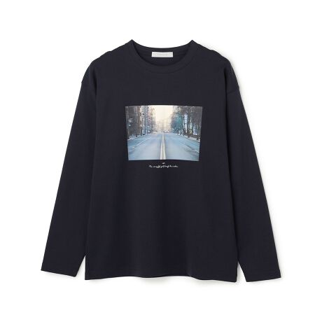 アウターやカーディガンなどのインナーに映えるフォトプリントカットソー
