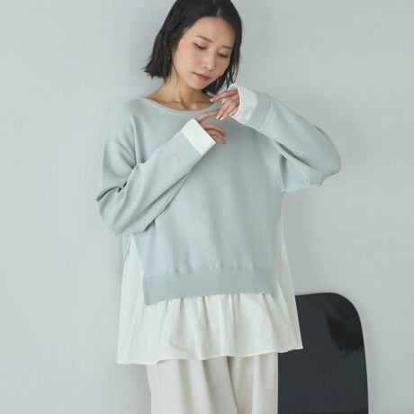 ・ニットとブラウスがドッキングしたレイヤード風デザイン