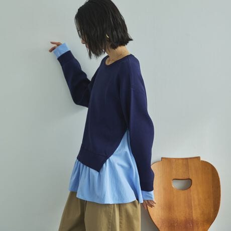 ・ニットとブラウスがドッキングしたレイヤード風デザイン