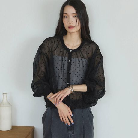 ・ニュアンス感のあるカラー配色でドットでも甘すぎないブラウス