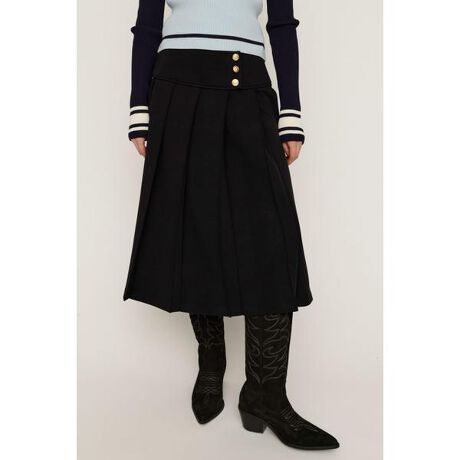 【KNITTING PLEATS SK】■POINT穿くだけでこなれたスタイリングが完成するプリーツミディ丈スカート。ニット素材を使用したことで上品な印象のアイテムです。■DETAIL縦ラインを強調するすっきりとしたプリーツはシルエットを綺麗に見せてくれます。程よく厚みのあるニット素材を使用しているので秋冬シーズンでも快適な着心地が魅力。ブラックと杢グレーでボタンの種類を変えているのもポイントです。ウエストまわりはフラットなデザインで、トップスをインしてももたつかず幅広いスタイリングで楽しんでいただけます。■STYLING同シリーズのKNITTING MANNISH TAILORED(030JSY80-2041)とセットアップでの着用が一押しです。ガーリーなトップスからカジュアルなスウェットまで幅広いスタイリングを楽しんで頂けます。足元はブーツ合わせがおすすめです。■FABRIC/MATERIAL綺麗見えでき、暖かく軽さのあるボンディングニット素材を使用。■透け感:なし■光沢感:なし■伸縮性:あり■裏 地:なし※お取り扱い上のご注意・素材の特性上、伸縮性がありハンギング保管により丈が伸びてしまう可能性がある為、たたみ保管をおすすめします。[注意事項]※画像の商品はサンプルです。実際の商品と仕様、加工が若干異なる場合があります。※画像の商品は光の照射や角度、お使いのモニター環境により、実物と色味が異なる場合がございます。※着用、お取り扱いの際は、アテンションタグをご確認ください。※一部予約商品につきましては生産上の都合によりお届け予定日や店頭発売と前後する場合もございます。※追加生産商品は、一部の店舗、通販で販売中の場合がございます。予めご了承下さい。