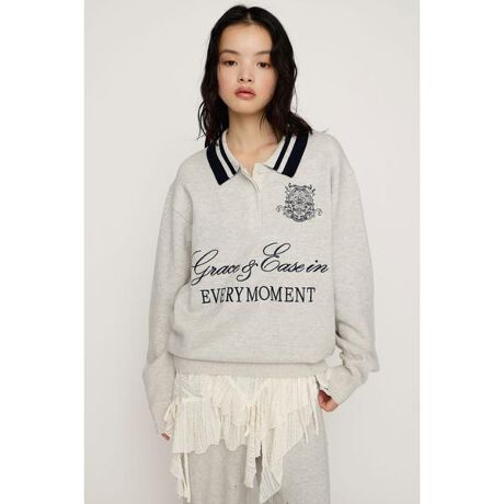 【OVER SIZE JQ TOPS】■POINT存在感のある刺繍デザインがカジュアルながらも上品見えするニットトップス。身体のラインを拾わない程よい厚みのあるニットとオーバーサイズシルエットが体型カバーを叶えます。1枚でコーディネートの主役になるアイテムです。■DETAIL目の詰まったダブルジャガード編みニットを使用しており、ふっくらとした肉感とハリのある風合いが魅力。型崩れしにくく、オーバーサイズでもラフに見えすぎないのがポイントです。襟の配色がアクセントになったライトイエロー・ライトブルー・杢グレーとヴィンテージライクなピグメント加工を施したブラウンの4色展開です。ボディカラーに合わせて刺繍カラーを変えているのもポイント。■STYLINGカジュアルにスウェットパンツやデニムと合わせるのはもちろん、ミニボトムスとロングブーツを合わせたガーリーなスタイリングもおすすめです。■FABRIC/MATERIAL程よいハリと厚みのあるダブルジャガードニットを使用。■透け感:なし■光沢感:なし■伸縮性:なし■裏 地:なし[注意事項]※画像の商品はサンプルです。実際の商品と仕様、加工が若干異なる場合があります。※画像の商品は光の照射や角度、お使いのモニター環境により、実物と色味が異なる場合がございます。※着用、お取り扱いの際は、アテンションタグをご確認ください。※一部予約商品につきましては生産上の都合によりお届け予定日や店頭発売と前後する場合もございます。※追加生産商品は、一部の店舗、通販で販売中の場合がございます。予めご了承下さい。