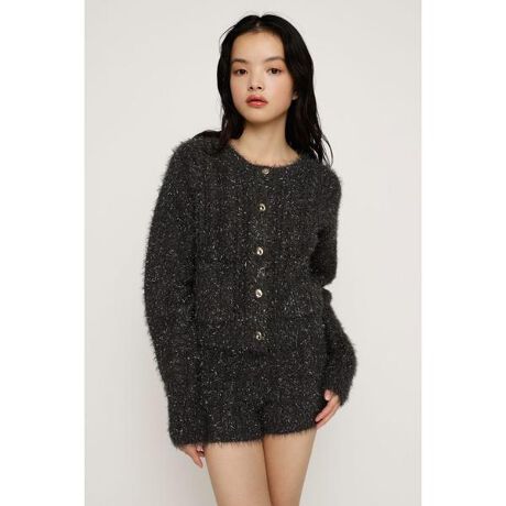 【SHINY CABLE C/D】■POINT毛足のあるシャギー素材にラメ糸をミックスした、シーズンムードを高めるニットカーディガン。立体感のあるケーブル編みが程よく存在感を放ち、羽織るだけでスタイリングを一気に華やかに仕上げます。■DETAILフロントのモチーフボタンが上品なアクセントとなり、デイリーにもオケージョンシーンにも活躍するアイテムです。程よい丈感でボトムスを選ばず着用していただけます。カラーによってラメの質感を変えているのもポイントで、上品な輝きの細かいラメ混シャギーを使用したアイボリー・ブラウンと毛足の長い光沢感のあるラメ混シャギー使用したグレーの3色展開です。■STYLING同シリーズのショートパンツ(030IAZ71-3751 / SHINY CABLE S/PT)とセットアップでの着用が一押しです。ワンピースやロングスリーブの上から羽織るだけで一気にシーズンムード漂うスタイリングが完成します。スカートと合わせた綺麗めスタイルから、カジュアルなデニムと合わせた抜け感のあるスタイルまで幅広く活躍します。■FABRIC/MATERIALラメ混のナイロンシャギーとケーブル編みのアクリルニットをミックスしたアイテムです。■透け感:なし■光沢感:あり■伸縮性:なし■裏 地:なし◆スリット・ラメ糸、の素材特性上、以下の点にご注意下さい。・汗や皮脂、汚れが付着したまま放置されますと光沢の消失につながります。・スリット・ラメ糸は糸が引き出されやすいため、他の物との摩擦にご注意下さい。・高温多湿での保管はお避け下さい。変色する事があります。・お肌のデリケートな方は刺激を感じる場合があります。刺激を感じた際は、すぐにご使用をお避け下さい。◆本品は毛足の長い素材を使用しています。素材特性上、摩擦や静電気の発生によって毛羽(繊維)が抜けたり、毛羽乱れが生じる事があります。また抜けた毛は組み合わせ衣類に付着し目立ちますので、同系色の衣類、雑貨との組み合わせをおすすめします。[注意事項]※画像の商品はサンプルです。実際の商品と仕様、加工が若干異なる場合があります。※画像の商品は光の照射や角度、お使いのモニター環境により、実物と色味が異なる場合がございます。※着用、お取り扱いの際は、アテンションタグをご確認ください。※一部予約商品につきま