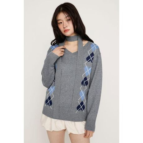 【ARGYLE JQ TOPS】■POINTトレンドのアーガイルをハートモチーフにアレンジしたジャガードトップス。細い同素材タイ付きで女性らしいアクセントとなります。■DETAILVネックをあえてオフショルダー気味に着るアレンジも可能なデザイン。ジャガードと繊細なタイがコーディネートの表情を豊かにします。■STYLINGミニボトムスとロングブーツで合わせるスタイリングが一押しです。オフショルで肩を出して女性らしく、どちらの着方も楽しめます。■FABRIC/MATERIAL伸びと張りのバランスが良いジャガードニット。程よい肉感で通年重宝します。■透け感:なし■光沢感:なし■伸縮性:なし■裏 地:なし[注意事項]※画像の商品はサンプルです。実際の商品と仕様、加工が若干異なる場合があります。※画像の商品は光の照射や角度、お使いのモニター環境により、実物と色味が異なる場合がございます。※着用、お取り扱いの際は、アテンションタグをご確認ください。※一部予約商品につきましては生産上の都合によりお届け予定日や店頭発売と前後する場合もございます。※追加生産商品は、一部の店舗、通販で販売中の場合がございます。予めご了承下さい。