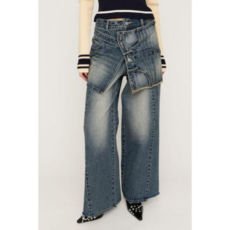 【REMAKE ASYMMETRY L/W DENIM PT】■POINTまるで実際にリメイクしたかのような存在感が魅力のデニムパンツ。巻きスカートを重ねたように見えるデザインで、フロントのボタンホール位置を変えることで、腰回りのサイズ感をお好みで調整できます。■DETAILあえて残した切りっぱなしのディテールや色落ち加工が、こなれ感とリアルなヴィンテージムードを演出。ワイドシルエットなので下半身をすっきり見せつつ、1点投入でスタイリングが一気にオシャレ見えするアイテムです。■STYLING巻きスカート風のディテールがアクセントになるので、シンプルなトップスでもこなれた雰囲気が自然と完成します。■FABRIC/MATERIALコットン100%のデニム地を使用。■透け感:なし■光沢感:なし■伸縮性:なし■裏 地:なし※お取り扱い上のご注意・素材特性上、着用や洗濯につれ退色し独特な色変化が生じます。・雨や汗等の湿った状態、着用や洗濯、クリーニングにより他の衣類、雑貨、家具等に色落ちします。・白・淡色との組合せは避けて下さい。・淡色は光(紫外線)で変色する事があるため、直射日光や蛍光灯の光に長時間さらさないようご注意下さい。・クラッシュやダメージ加工品は、着用や洗濯につれて加工箇所の広がりが生じる事がありますがご了承下さい。・着用や洗濯につれ多少の縮みやネジレ(製品がねじれて見える状態)が生じる事があります。・ボタンやリベット等の金属付属を使用している場合は突起部分で人体や対象物にキズを負わせる恐れがありますのでご注意下さい。・本品は裁ち切り始末にしています。・着用や洗濯、クリーニングの繰り返しにより、ほつれが増したり、裁ち切り部分が丸まってくる事がありますので、ご了承下さい。・ほつれが目立った際はほつれた糸を引っ張ったりせず、カットして下さい。[注意事項]※画像の商品はサンプルです。実際の商品と仕様、加工が若干異なる場合があります。※画像の商品は光の照射や角度、お使いのモニター環境により、実物と色味が異なる場合がございます。※着用、お取り扱いの際は、アテンションタグをご確認ください。※一部予約商品につきましては生産上の都合によりお届け予定日や店頭発売と前後する場合もございます。※追加生産商品は、一部の店舗、通販で販売中の場合がござい