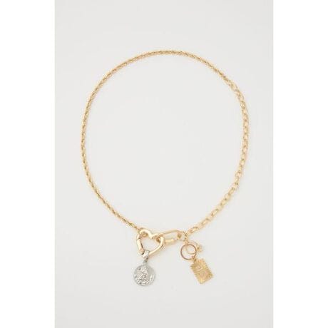【CHARMS NECKLACE】■POINTいろんなチャームがデザインポイントの揺れる華奢なネックレス。コーディネートに遊び心をプラスする小物アイテム。■DETAIL複数のミニチャームが連なるデザインで、首元にさりげない動きを演出。■STYLINGシンプルなトップスのポイント使いに最適。重ね付けとも相性が良くデイリーに活躍します。■FABRIC/MATERIAL真鍮を使用。着用後は柔らかい布で拭くなどのお手入れをおすすめします。※お取り扱い上のご注意・体質によってはかぶれ等を生じる場合がありますので、皮膚に異常を感じた時は、ご使用をお止めいただき、専門医にご相談下さい。・水、汗、消毒液などに触れたり、皮脂及び汚れの蓄積により変色や変質する場合があります。・定期的にふき取りのメンテナンスをお願いします。・消毒液が製品に直接かかる事が無いようご注意下さい。[注意事項]※画像の商品はサンプルです。実際の商品と仕様、加工が若干異なる場合があります。※画像の商品は光の照射や角度、お使いのモニター環境により、実物と色味が異なる場合がございます。※着用、お取り扱いの際は、アテンションタグをご確認ください。※一部予約商品につきましては生産上の都合によりお届け予定日や店頭発売と前後する場合もございます。※追加生産商品は、一部の店舗、通販で販売中の場合がございます。予めご了承下さい。