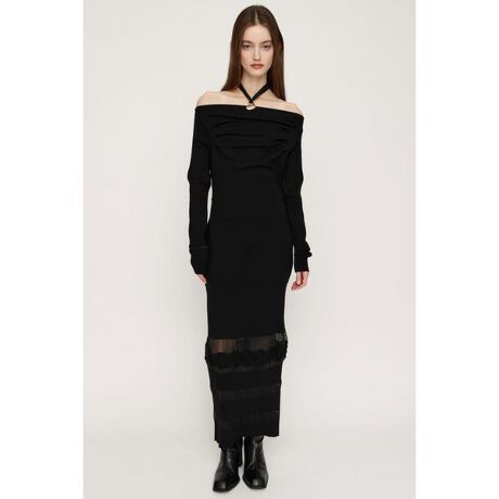 【OFF SHOULDER KNIT OP】■POINTデコルテラインを美しく引き立てるタックデザインが魅力のロングワンピース。肩を落としてワンショルダーやオフショルダーとしても着用出来る2WAY仕様です。袖口や裾に透かし編みを部分的に使用することで、程よい肌見せを楽しめるアイテムです。■DETAILボートネックデザインは、デコルテ周りを華奢に見せ、ウエスト周りはギャザーを寄せてすっきりとした印象に仕上げています。落ち感のある素材と袖口や裾に配置された透かし編みが女性らしい印象に仕上げています。■STYLING1枚で着映えするロングワンピースです。肩を落としてワンショルダーでも落とさずそのままでも、気分に合わせて着用していただけます。女性らしい細身シルエットなのでボリューム感のあるファーアウターやシックなロングコート合わせがおすすめです。■FABRIC/MATERIAL落ち感と伸縮性のあるニットを使用。■透け感:部分的にあり■光沢感:なし■伸縮性:若干あり■裏 地:なし[注意事項]※画像の商品はサンプルです。実際の商品と仕様、加工が若干異なる場合があります。※画像の商品は光の照射や角度、お使いのモニター環境により、実物と色味が異なる場合がございます。※着用、お取り扱いの際は、アテンションタグをご確認ください。※一部予約商品につきましては生産上の都合によりお届け予定日や店頭発売と前後する場合もございます。※追加生産商品は、一部の店舗、通販で販売中の場合がございます。予めご了承下さい。