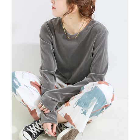 軽やかな素材感と立体的なフロッキーの素材を使用。レイヤードスタイルはもちろん、ジャケットやベストのインナー合わせも素材感が映えるトップスです。いつものスタイリングにプラスするだけ旬なスタイリングが完成します。