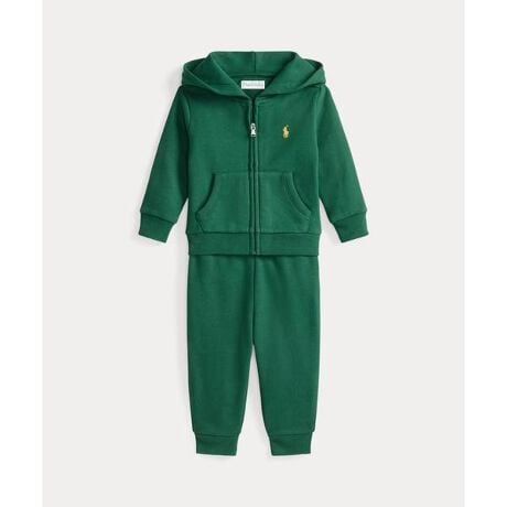薄手でこの上なく柔らかなコットン混紡フリースを使用したスポーティなセット。・Ralph Laurenのコットン製品を選ぶことで、環境の保護と修復に努めながら、コットン業界が今後も成長を続けられるように支援するBetter Cotton(TM)ミッションへのRalph Laurenの取り組みをサポートすることになります・本商品は物質収支方式に則って材料を調達しているため、全ての製品にBetter Cotton(TM)が含まれない可能性があります。・フーディ:左胸にシグネチャーのポニー刺繍 / フード / フルジップフロント / 長袖、リブカフス / スプリット カンガルー ポケット / リブの裾・パンツ:ドローストリング付きリブのウエストバンド、あらかじめ結ばれたリボン / リブの裾開き※商品の色味は、光のあたり具合など諸条件により色感が多少異なって見える場合がございますので予めご了承下さい。 【素材】・上 本体:綿 60%、ポリエステル 40% フード部分:綿 60%、ポリエステル 40% 装飾部分を除く パンツ 本体:綿 60%、ポリエステル 40% 装飾部分を除く【生産国】インド