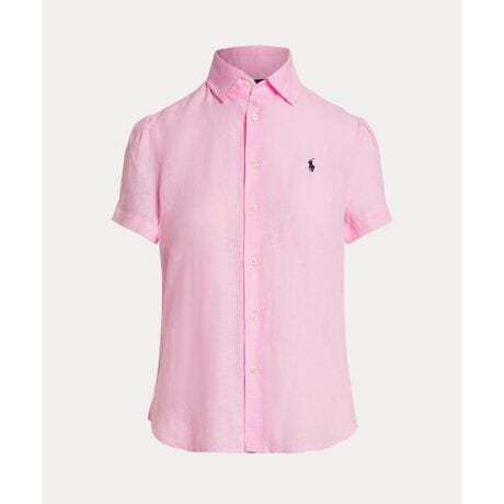 リネンの織り地を使用し、軽量感を実現した半袖シャツ。ボタンダウンのポインテッドカラーやラウンド型にカーブした裾など、クラシックなメンズウェア風のディテールが特徴・ストレートフィット / 腰丈・ボタンダウンのポインテッドカラー / ボタン付き前立て・半袖 / カフスにシャーリング入り・左胸にシグネチャーのポニー刺繍 / ラウンド型にカーブした裾 / バックヨーク・モデル身長178cm、着用サイズS※商品の色味は、光のあたり具合など諸条件により色感が多少異なって見える場合がございますので予めご了承下さい。 【素材】・本体:麻 100% 装飾部分を除く【生産国】インド