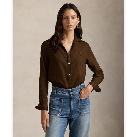 薄手のリネンで織り上げ、シェルボタンと緻密なシグネチャーのポニー刺繍のディテールを施したストレートフィットのシャツ・クラシックフィット:ストレートなシルエット / 腰丈・ポインテッドカラー / ボタン付き前立て / シェルボタン・長袖、ボタン付きバレルカフス・ボックスプリーツのバックヨーク / ラウンド型にカーブした裾・左胸にシグネチャーのポニー刺繍・モデル身長178cm、着用サイズS※商品の色味は、光のあたり具合など諸条件により色感が多少異なって見える場合がございますので予めご了承下さい。※ラルフ ローレンのシャツは、袖口がまくられた状態で納品され、そのままの状態で保管されている場合があります。デザインや商品特性を活かす為に、あえてこのような工夫をしておりますので、予めご了承ください。 【素材】・本体:麻 100% 装飾部分を除く【生産国】インド