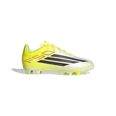 F50 CLUB FG/MG スパイクは、子どもたちが潜在能力を十分発揮できるようにデザインされたモデル。ゲームの流れを変えるようなスピードを追求し、アッパーのグラフィックを一新し、驚くほど軽量化されている。質感のある合成素材のアッパーが、技術的な美しさと快適なフィット感を叶え、FXGアウトソールは、天然芝でも人工芝でもグリップ力を発揮。フィット感を高めるシューレース、通気性を促すパンチング加工の軽い合成シュータン、プリントの2Dマッドガードが特徴のこのスパイクは、ブランドのスタイルとパフォーマンス性の両方を見事に体現している。