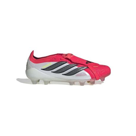 プレデター ELITE 折り返しシュータン HG サッカースパイクを履いて、自信を持ってプレーしよう。努力する人のためにデザインされたこのスパイクは、伝統と最先端のテクノロジーを融合させている。ナノストライク+メッシュが羽のように軽い柔らかさを実現し、一体型のラバーグリップ要素が、様々なピッチコンディションで精確なキックを可能にする。Powerspineテクノロジーがシュートの際に力の伝達を補助し、ミッドフットの安定性を高める。アイコニックな折り返しシュータンが滑らかな蹴り出し面を作り出し、ボールコントロールの精度を向上させる。また、adidas PRIMEKNITテクノロジーが足を快適に包み込む。高い機能を発揮し、最後まで頑張れるようにサポートするこのスパイクは、あらゆる場面でプレーヤーの力になる。