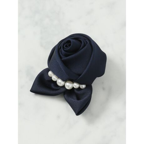 ■セレモニーやオケージョンなど、ハレの日のフォーマルシーンに欠かせないコサージュです。上品な光沢のあるサテン素材を使用。立体感のあるバラをイメージしたコサージュに、人工パールとビジューをあしらって華やかな雰囲気に仕上げています。ジャケットやワンピースに添えると、胸元の上品なアクセントとして大活躍してくれます。留め具はクリップと安全ピンがついています。