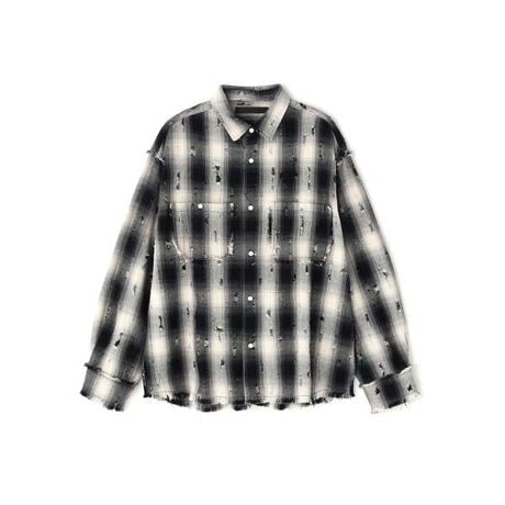 オンブレチェックをベースに、随所へ大胆なダメージ加工を施したロングスリーブシャツ。