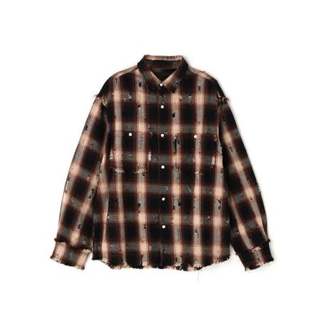 オンブレチェックをベースに、随所へ大胆なダメージ加工を施したロングスリーブシャツ。