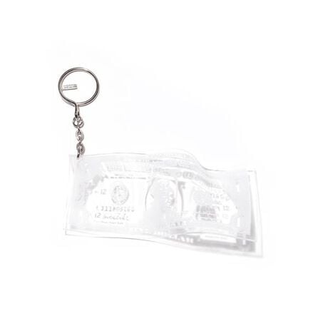 透明な素材にドル紙幣のモチーフを閉じ込めた、KOTA OKUDAらしいコンセプチュアルなキーホルダー。