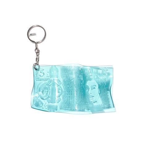 透明な素材にポンド紙幣のモチーフを閉じ込めた、KOTA OKUDAらしいコンセプチュアルなキーホルダー。