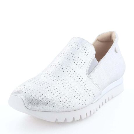 靴下着用でいつものサイズがピッタリでしたが、甲が深めなので素足でも大丈夫そうです。革は柔らかいですがホールド感があり、柔らかすぎず硬すぎずの中敷きは長時間の歩行も楽そうです。パンチングのデザインが引き立つシルバーがオススメです!