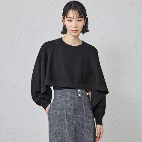 袖から身頃まで編地を続けることで、きれいなフレアとボリューム感が出るように設定しています。