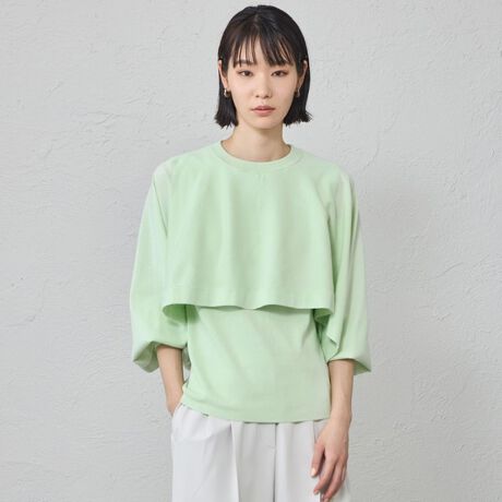 ノースリーブと短丈のオーバーニットをドッキングさせたニットプルオーバー。