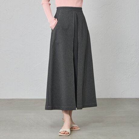 フロントのタックと大きめポケットがデザインポイントのAラインスカート。