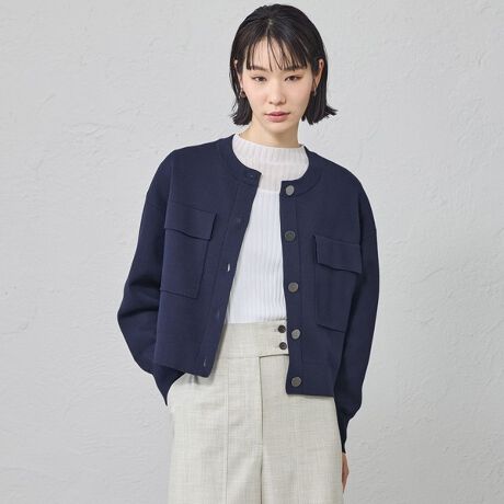 膨らみのある編地を使用したニットジャケット。