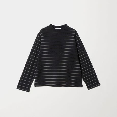 細ボーダーのロングスリーブTシャツ。