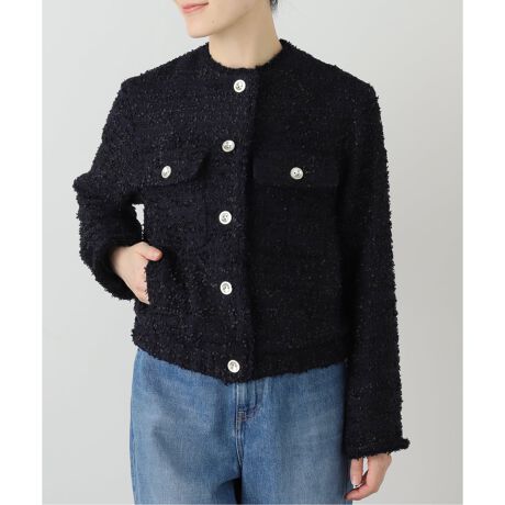 今年注目のペールブルーを差し色に取り入れ、ブルゾンのような軽やかさに仕上げたツイードジャケット。