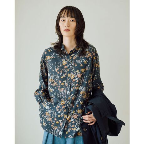 水彩タッチのフラワープリント生地を使用したシャツです。