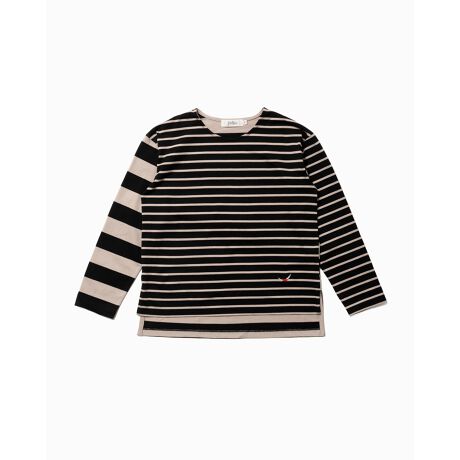 ピッチが違うボーダー柄を組み合わせたクループルオーバーです。