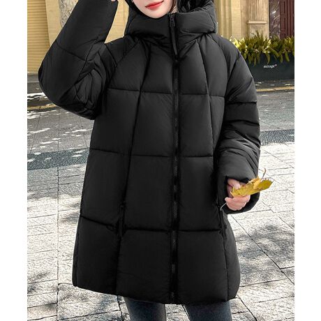 ミディアム丈のAラインシルエットで体型をカバーしつつ、着膨れせずすっきり見える。