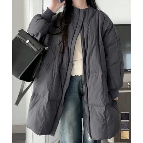 スタンドカラー中綿ダウンコート ゆったり