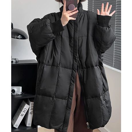 スタンドカラー中綿ダウンコート ゆったり