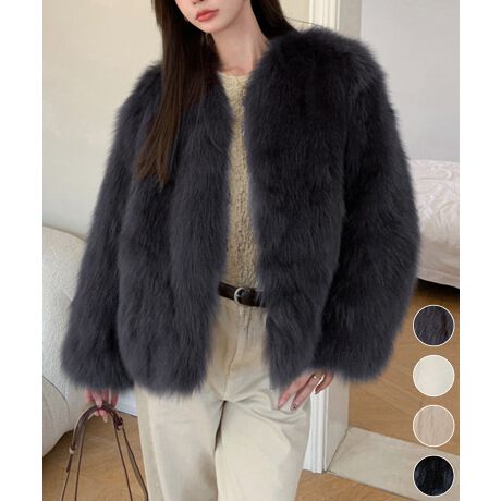 マルイウェブチャネル   /   ミニミニストア   /   アウター・ジャケット・コート   /   その他アウター・ジャケット   /   韓国風ノーカラーフェイクファージャケット