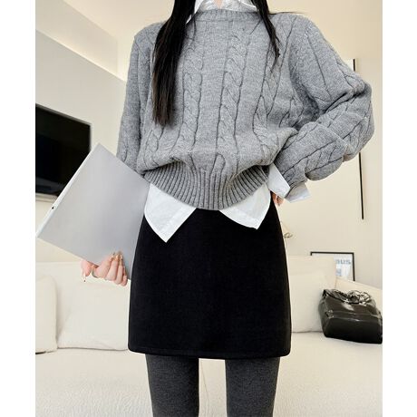 タイトシルエットが魅力の、あたたかみある起毛素材裏地付きミニスカート。