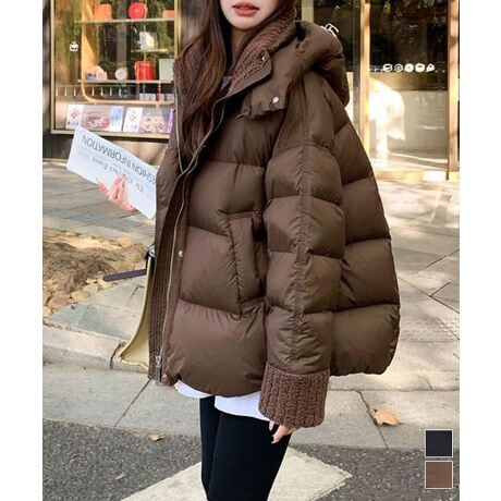 トレンド感のあるボリュームシルエットが魅力の、フード付き中綿ダウンジャケット。