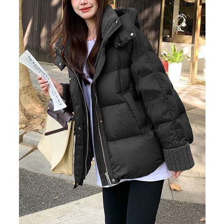 トレンド感のあるボリュームシルエットが魅力の、フード付き中綿ダウンジャケット。