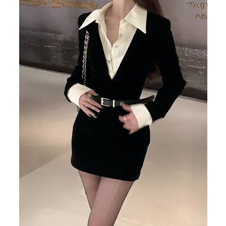 シャツとワンピースを組み合わせたフェイクレイヤードデザインで、一枚でおしゃれなスタイリングが完成。