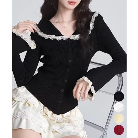 繊細なレース使いが目を惹く、フェミニンムードたっぷりのリブニットトップス。