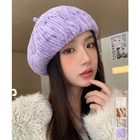 立体感のあるリブ編みが、コーディネートに存在感をプラスするニットベレー帽。