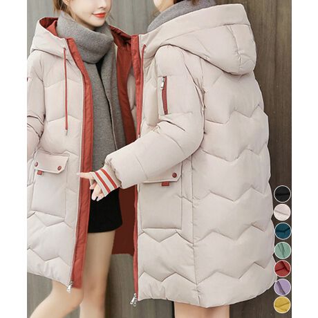 フード付きロングダウンコート中綿アウター