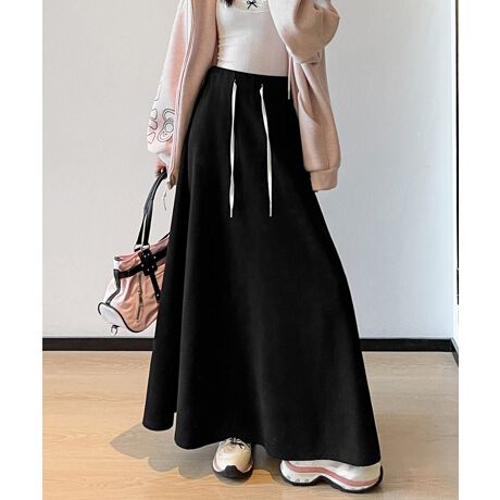 柔らかなスウェット素材を使ったウエストゴムのロングスカート。