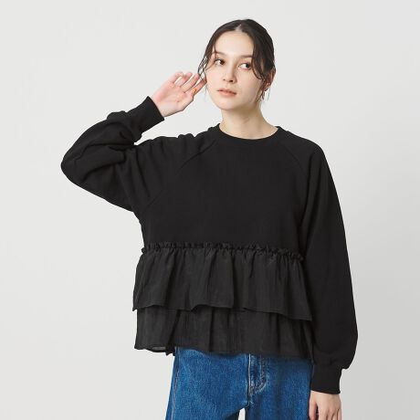異素材ギャザーで魅せる、大人のティアードスウェット