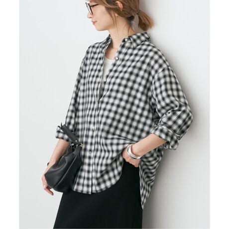 綿リヨセル素材を使用し、程よいシアー感とリヨセル特有の柔らかな落ち感が女性らしい印象のチェックシャツです。